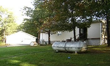 PRICE REDUCED This is a very nice property bordering state game lands. The only part that makes this a mobile listing is the bottom. All drywall inside on 6" walls vinyl sided on outside. 10/12 pitch metal roof,insulated tilt out vinyl windows, central air, newer 21x10 kitchen. Large back porch to view wildlife, 32x32 garage with electric and heat, screened pavillion with barbecue.