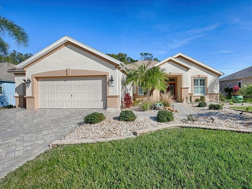 Discover the ultimate panoramic vistas and ample living space in this remarkable residence. Situated alongside the picturesque 6th hole of the prestigious Memorial Golf Course, this Hanover model boasts 2 bedrooms, a den, and an array of luxurious features. Immerse yourself in the elegance of tiled floors throughout the home, complemented by the warmth of engineered wood flooring in the bedrooms. The kitchen, overlooking the expansive great room, showcases upgraded and extended cabinets, two pantries, coriander countertops, a stylish tile backsplash, and more. Step inside through the inviting leaded glass front doors to experience a sense of excitement. Admire the exquisite crown molding and plantation shutters that adorn the interior. The lanai, enclosed with glass windows, offers a split HVAC system, tiled flooring, roller shades on the windows, and a convenient remote-controlled awning. Additionally, a 12x16 pavered patio awaits, perfect for enjoying outdoor grilling and embracing the vibrant Florida lifestyle. The garage has been extended by 4 feet and includes a dedicated space for a golf cart. This exceptional property encompasses all the features that discerning buyers desire. The roof was replaced in 2022, and the HVAC system was updated in 2017. With the home currently vacant and move-in ready, seize the opportunity to make this extraordinary residence your own. Please note that the furniture shown in the photos is virtual, and the two fountains, located in the front and rear, are not warranted by the sellers. Don't hesitate - call today to schedule a viewing of this exceptional home.