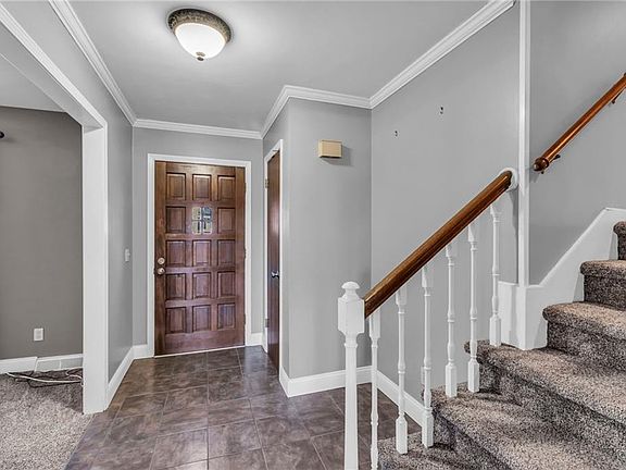 Inside, the home offers both comfort and functionality. The living room greets you on the right, with a formal dining room adjacent. The kitchen, featuring an island for prep or entertaining, flows into the cozy family room with a fireplace and views of the backyard. Upstairs, the spacious bedrooms provide peaceful retreats, including a serene primary suite. The partially finished lower level offers versatile space for a media room, gym, or additional living area.