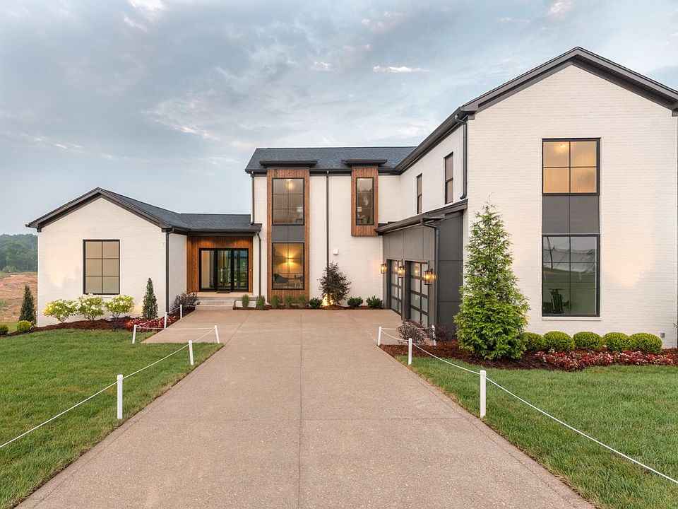 This 2-story, 3,980-square-foot walkout with 4 bedrooms and 3.5 bathrooms showcases large windows around every turn to display the gorgeous woodland view, allowing natural light to pervade the airy interior living spaces and open floor plan. Natural elements are incorporated throughout the home, beginning with the white painted brick exterior with red western cedar trim details. Through the large glass entry doors, hardwood floors pick up beyond the slate entryway. The oversized kitchen is adjacent to the large covered porch and rear deck, making transitioning to outdoor spaces a breeze. Black matte cabinetry, luxurious white quartzite countertops and an intricately designed marble backsplash frame the hickory island with seating. Thermador Pro appliances make cooking a luxury experience. Pantries and closets are fitted out by California Closets. High-end contemporary lighting accent the first floor. A more intimate private deck is located off the dining room, custom-trimmed in cedar. The double-height great room features a custom steel stairwell with richly colored black walnut live-edge treads. Hardwood floors continue up through the second-floor loft space that overlooks the great room, which residents can use as another living space, office or study space. Upstairs, children or guests can spread out among three generously sized bedrooms. Once it's time to retire for the night, residents can enjoy a secluded retreat in the owner's wing, with lofty 16-foot vaulted ceilings in the bedroom and bath, and custom-designed closets for two. An exit to the deck allows early-risers to quietly step outside to breathe in the morning air, perhaps with coffee in hand. In the master bathroom, filled with marble elements and natural light, another surprise awaits: when the time comes to step into the luxurious shower or soaking tub, simply hit a switch and a large picture window made of state-of-the-art virtual smartglass will frost over for privacy. In the lower walkout, the basement entertainment zone is complete with home theater, bar with cabinet faced beverage refrigerator, and living space. Double doors lead to yet another outdoor entertaining space. An opportunity to finish a bedroom and bathroom complete the basement.