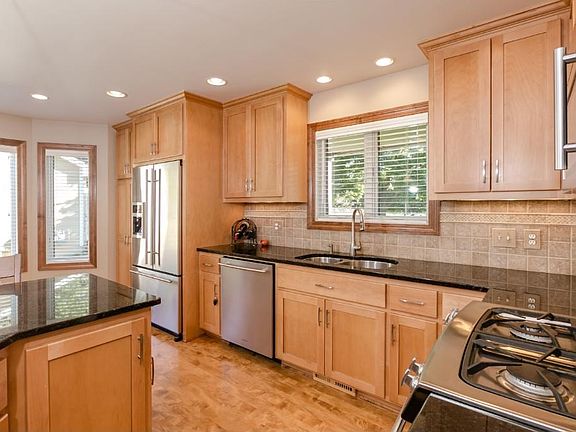Super-sharp 4 level features: 4 bedrooms, 2 bathrooms, new kitchen with maple cabinets and Jenn-Air appliances! Concrete driveway, storage shed, deck, patio, front porch, great family room with fireplace! Other features: 220 in garage, maple floors, tile backsplash and more! Smoking hot property!