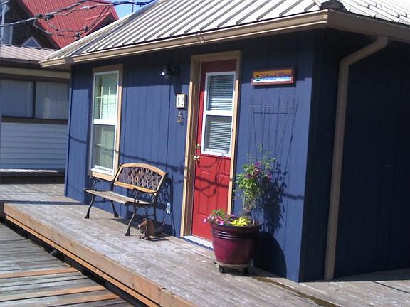 Sweet little floating home that lives big with spacious floor plan. I bedroom w/window seat and bathroom access. Entry has coat area, nice shelves and laundry area behind doors. Nice sized bathroom with shower and second door access. Big kitchen with eating bar...opens to dining room, living room with wood stove and eating bar across front windows. Loft/storage area Remodeled 4 years ago .....new stringers, decking,carpet, linoleum,countertops,paint inside and out. Newer gas furnace. 60x30 deck, most on front of house. Some large appliances and furniture negotiable to stay w/ house. We will only sell if house is moved. Must see to appreciate! Please call if interested and you have a place to move the house. 04/04/16