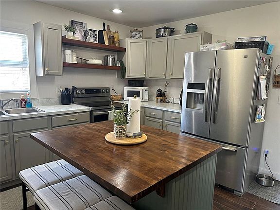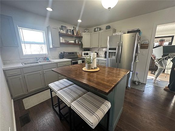 Charming all-level bungalow on a spacious corner lot (nearly an acre) in Andrew County—a rare find with low-maintenance vinyl siding and a durable metal roof! Situated on a blacktop, this move-in-ready home boasts tasteful updates throughout. The main floor features a cozy bedroom, an oversized bathroom, and a convenient laundry/mudroom. The open-concept kitchen, dining, and living areas create a welcoming gathering space. Downstairs, you'll find a large bedroom that is non-conforming and has ample clean storage. Relax on the back patio, take in breathtaking sunsets, and enjoy the peaceful country setting. Don’t miss this opportunity!