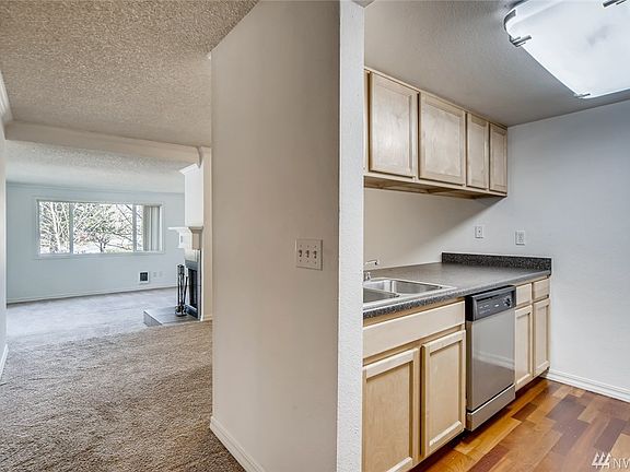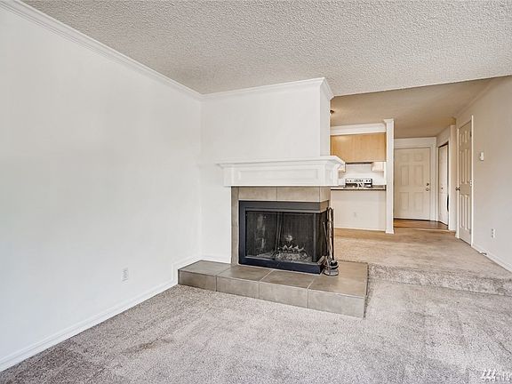 Welcome to your new 2 bed 1 bath condo with westerly views! Relax in the sunken living room next to a real wood burning fireplace. Have fun hanging out with friends in the kitchen with eating bar that opens to a spacious dining area. Master bedroom complete with walk-in closet. Step out onto your west facing covered balcony and enjoy beautiful PNW sunsets. Excellent location just minutes to Boeing, I5, dining, and shopping. Your unit includes reserved parking and an additional covered storage unit next to your entrance. Water, sewer, and garbage plus complete common area maintenance included in dues! Washer and dryer stay. Walking distance to Lake Stickney Off-Leash Dog Park! VA/FHA approved