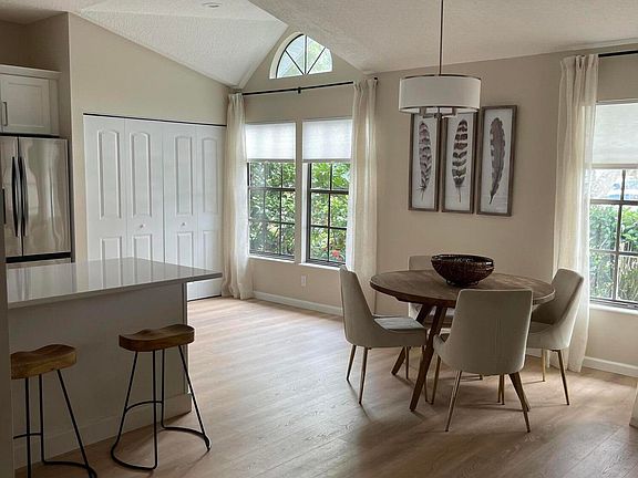 FULLY TURNKEY MOVE IN READY! Furniture included in sale. Fully renovated home in highly desired secure gated community of Meadowland Cove in Wellington on Lake Wellington. Beautiful home ready for its new owners. This home just finished a full renovation and has not been lived in. Renovation includes a brand new roof as of August 2024, full exterior and interior freshly painted, new LVP floors throughout all living areas, new tile in bathrooms, new appliances, beautiful white kitchen cabinets with quartz countertops, fully renovated bathrooms and more. Both bedrooms have large walk-in closets and attached master bathrooms. Relax in your backyard oasis with a beautiful bougainvillea and magnolia tree, fire pit, fenced in backyard and patio. Community amenities include clubhouse pool, large lake and boat ramp for fishing and non-motorized boats. Low HOA monthly payments. Conveniently located in the heart of Wellington, close to equestrian grounds, polo, golf, and much more! Excellent A rated schools. Schedule a showing today and make this great home yours.