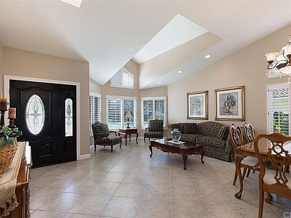 Delightful single level family home lived by original owners debuts first time on the market. Elegant entry door with side lite lead your guests into the majestic spacious living room boasting high ceilings, recessed lighting, skylight and abundance of double pane windows inviting a wealth of natural light into the living and dining rooms.Stylish plantation shutters in the living and family rooms accentuate the gleaming interior of this meticulous warm home.Bright dining room seasoned for casual family dining or elegant entertaining features opens to the living room. Family room that's relaxation headquarters for the family features large tile flooring, warm fireplace,stylish ceiling fan,and recessed lighting. Cook to your heart's delight in the spacious, modern kitchen upgraded with recessed lighting, abundance of cabinets, drawers, and granite counter tops. Enjoy a wonderful breakfast or meal in the Kitchen nook with views to the wonderful back yard and snow covered mountains through the picturesque windows. Master bedroom accommodates the most lavish furnishings, double pane sliding doors lead to the outdoor covered patio. High ceilings, ceiling fan, laminate flooring, walk in closets, and office or retreat amenities offered in the master bedroom. The master bath includes two handy sinks to save morning traffic tie-ups,convenient walk in shower and tile flooring.Everyday is a vacation in the enchanting backyard featuring barbecue station,covered patio, and mountain views.