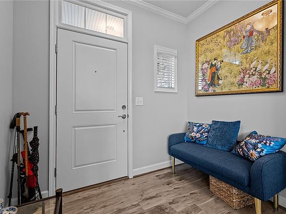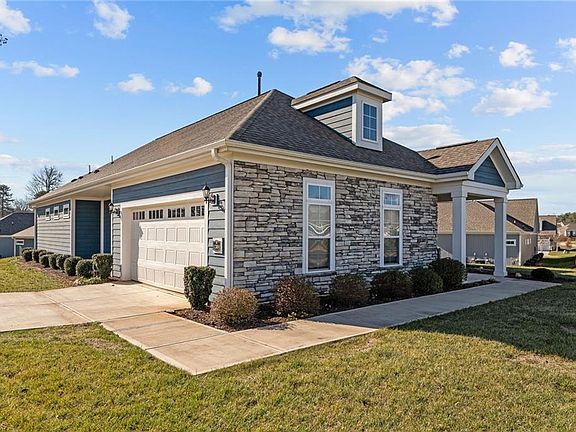 Well-maintained home situated on a spacious corner lot. This residence features an open-concept floor plan with tray ceilings, a gas log fireplace, and a beautifully appointed kitchen offering quartz countertops, stainless steel appliances, refrigerator remains, an undermount sink, and a large center island. Vinyl Plank flooring is located in the living areas, tile flooring in the bathrooms and carpet in the bedrooms. The spacious primary suite includes a zero threshold, tiled walk-in shower and double vanities. Community amenities include a clubhouse, pool, cabana, fitness center, community garden, and green space. Exterior cement siding maintenance is included in the monthly HOA dues.