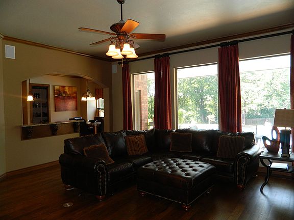 This luxurious 5 bed 4.1 bath is a dream home in the heart of Edmond. Spanning at 4000 SF (mol), this magnificent residence sits on over a half acre (mol) lot w/your personal backyard oasis encompassing a beautiful salt water pool & spa. Enjoy gatherings in the generously-sized open living/kitchen area graced by a magnificent rock fireplace, huge windows, solid oak floors, 10' (mol) ft ceilings, & stylish finishes. The kitchen will inspire your inner chef w/its granite counters, breakfast bar, massive center island w/a 5 burner gas cooktop, beautiful cabinetry & stainless steel appliances. The 1st floor also offers an elegant formal dining room & 2nd living that can also be used as an office w/barn doors & built-ins. Master suite offers dual vanities, jetted tub, separate shower & a massive walk-in closet. Large upstairs bonus & secondary beds all boast their own bathrooms. Great neighborhood backs to trails & YMCA at Mitch Park, located near shops, Uptown Grocery & restaurants.