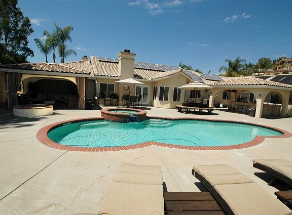 PRICE $879,000-$929,000 VISTA GRANDE SINGLE STORY 4 BEDROOM 3 BATH SINGLE STORY PLUS 1 BEDROOM 1 BATH GUEST HOUSE / GRANNY FLATT PALM SPRINGS BACK YARD SOLAR HEATED POOL AND SPA 2 CABANAS WITH TV MUSIC AND OUTDOOR KITCHEN GREAT FOR ENTERTAINING 3 CAR ATTACHED FINISHED GARAGE 10 OFF STREET PARKING SPACES GOURMET KITCHEN WITH GRANITE CUSTOM BUILT INS BREAKFAST BAR ISLAND BAR EAT IN KITCHEN AND FORMAL DINING ROOM DOUBLE OVEN MICROWAVE WARMING DRAWS SOLAR ELECTRIC CENTRAL VACUUM HUGE BUILT IN ENTERTAINMENT CENTER THIS IS A TRUE OUT DOOR PARADISE RAISED BED GARDENS DOG RUN OUT DOOR MISTER SYSTEM NEW CENTRAL AIR AND HEAT FIRE PIT MATURE PALM TREES BUILT IN 2 PERSON OFFICE HUGE MASTER BEDROOM SUITE WITH 2 PERSON TUB AND WALK IN CLOSET FRENCH DOORS RAIN GUTTERS DUAL PANE WINDOWS 2 FIREPLACES
