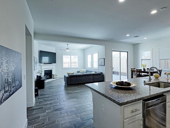 Your opportunity for a one year old, single level upgraded home in Santana Ranch! Great entertaining in this kitchen featuring upgraded Shaker white cabinets, slab granite and a subway tile backsplash. Cool gray paint and stainless steel appliances keep the kitchen on trend. You will find Plantation Shutters and the tile floor has been extended throughout the living space and upgraded HDMI. The spacious primary suite hosts a glass door to the backyard retreat, both a soaking tub and a stall shower as well as an organized walk in closet. The backyard is relaxation ready and low maintenance with a cement patio and artificial turf, low voltage wiring and irrigation ready. There is the bonus of no rear neighbors! A home gym or office can be in the insulated garage and the side yard is ready for pets. Prewired for your electric vehicle and an economical solar system round out the benefits of this home. Seller is willing to consider credit to buyers to help buyers lower their interest rate.