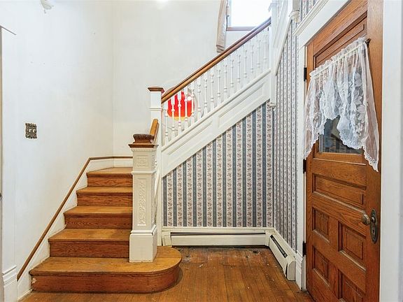 Great opportunity to restore this victorian to it's glory! New one layer roof in 2011, awesome pocket doors on the main level, full attic for storage or finish it for additional 3rd floor living. New kitchen flooring. Seller providing a 1 year HSA Home Warranty that includes the hot tub! Boiler heat for that cozy feel, and a working wood burning fireplace in the living room. Huge basement offers clean storage. Bring some paint and polish and make this home yours! Sold ''AS IS", Inspections are for buyer's informational purposes only. Seller will make no repairs. Seller reserves flowers outside.