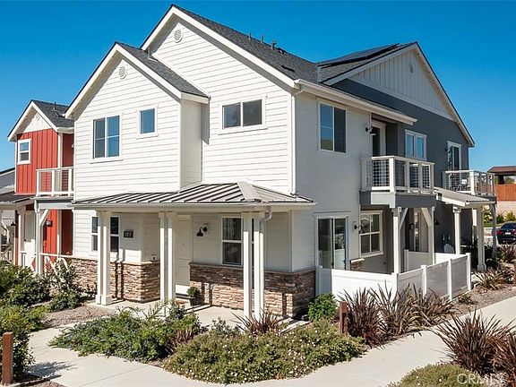 Pristine and almost new Iron and Oak townhome in the heart of the peaceful and serene San Luis Obispo community of Righetti Ranch. This 3-bedroom, 2 1/2 bathroom almost 1700-sq. ft. townhome is placed perfectly along a currently gurgling seasonal creek and picturesque greenspace. You enter into the bright and airy open concept living area with a beautifully adorned kitchen with quartz countertops, large island with bar-seating, and like-new stainless steel appliances. The large dining and living areas are well lit with natural light and recessed lighting. A sliding glass door leads to a quaint patio along the creek and greenspace. The first level is rounded out by a 1/2 bathroom and 2-car garage for your convenience. Upstairs you find 3 spacious bedrooms, 2 bathrooms and a laundry closet, including a master suite with modern en-suite bathroom, walk-in closet and deck with amazing views of the surrounding mountains. There are mountain views from the guest bedroom windows that share a Jack-and-Jill bathroom. This all is rounded out by owned solar, A/C and plenty of parking beyond the 2-car garage. This beautiful home is located across the street from a soon-to-be constructed park with plans for soccer fields, tennis / pickleball courts, basketball courts, bocce, dirt bike trails and huge playground. This is an unbelievable opportunity to live in one the nicest communities in SLO. It won't last long!
