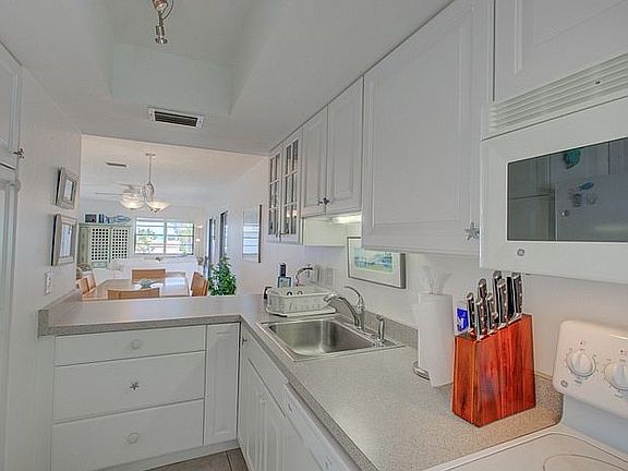 This immaculately clean, turnkey furnished condo is located in a lovely, smaller (16 unit) bay front complex that is just steps from the beach. It is perfect for your island getaway or as an investment property that always rents well. This 2br/2ba unit is light, bright and beautifully done with decorator touches everywhere. Heated pool, covered parking, 2 decks, boat/fishing dock on the intracoastal and so much more. This beauty is unique because it has windows on all four sides....Pool on one side, Bay on one side and even a glimpse of the Gulf of Mexico out of the living room! Great rental history, with weekly rentals allowed and good income potential. The complex is a short distance from many fabulous restaurants, and it is an intracoastal-front property with beach access across the street. Two assigned covered parking spot and guest spots for family and friends. Many new upgrades including: All new hurricane rated windows and sliding doors (2021), new air-conditioner (2019) , new AC ducts (2020), new hot water heater (2018).
