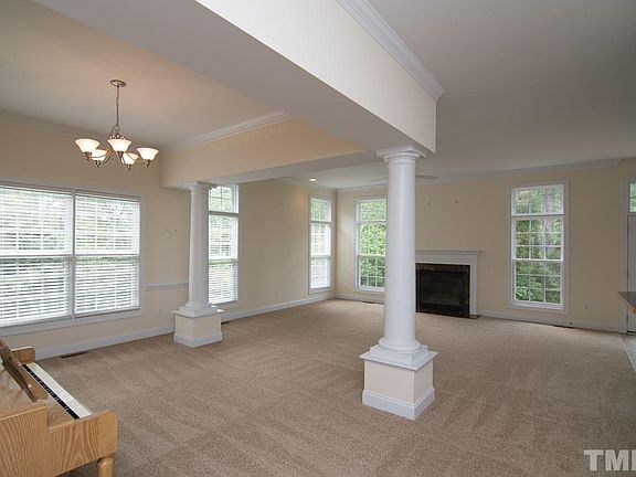 Imagine one story living convenient to I40 & Southpoint Mall in this 4 BR, 3 BA Ranch w/Brand New Carpet throughout. Foyer w/HW floors. Open concept DR, LR w/gas log FP & EIK w/gas stovetop, pantry, island w/storage & ref incl. MBR ensuite w/dbl vanity sinks, garden tub, walk-in shower, WIC & linen closet. Hall BA w/double vanity sinks & tub/shower. BR off foyer could also be office w/attached BA w/walk-in shower. Laundry room w/incl. W/D. Deck overlooks flat yard & community pond. 2 car garage.