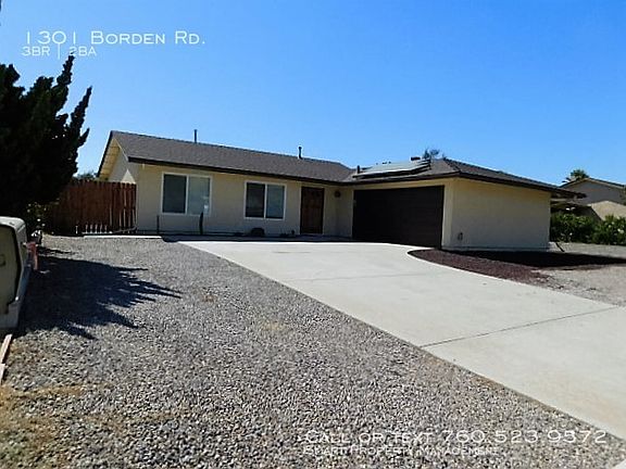 SCHEDULE A SHOWING ONLINE AT: showmojo.com/lh/8c06fec057 1301 Borden Rd. Escondido CA 92026 Great Solar Home! All New a few years ago! Beautiful granite counters, stainless steel appliances, and amazing hardwoods! Plus upgraded high efficiency windows keep the noise and heat out and cool air in! A complete high efficiency flip a few years ago, very well maintained since then! Look at all the Features of this beautiful home: -granite counters -modern backsplash in kitchen -sleek cabinets -gorgeous tile floors in kitchen and bathrooms -beautiful hardwood laminate -newer carpet -solar panels, cut your electricity bill in half! -hard working and efficient A/C -low water maintenance yard! -attractive modern paint scheme -energy efficient and upgraded windows! This house has it all! Saves you so much money every month! Efficient A/C! Solar Panels! Low Water Maintenance Yard! For more info, please call any time, 24/7, 760.523.9572 and you can make an appointment to come see this gorgeous home! Thank you so much for coming to see us!