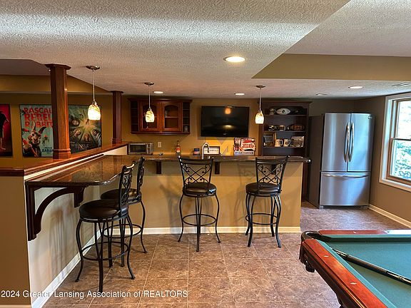 OPEN SUNDAT 12:30-2:30 Entertainers' paradise! This 4 bedroom 3 1/2 bath walk-out 2 story home has a custom-built theater system with 4 theater seats, a wet bar with granite countertops, pool table and a hot tub on the brick paver patio! Hickory kitchen cabinets with large island and all appliances will stay including washer, dryer and wet bar refrigerator! Quality Andersen 400 Series Windows! Primary suite has a full bath with whirlpool tub, shower and walk-in closet! large back yard includes a gardening shed with concrete floor and electricity! Very low Bingham township taxes! Hurry...these Win-Mil Farms properties don't last long!