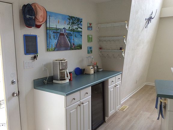 Contract pending Flood insurance just 715/yr. 4th row beach house located on the bay. Four bedrooms two upstairs and two downstairs each has a slider to a deck only reachable from the house. Light filled open floor plan. Living room dinIng and kitchen open to vaulted ceiling. Separate open TV area and office area upstairs. All community rooms have water view. Large windows and decks on waterside. New roof 2017. New two zone air 2015. Replaced bulkhead cables with stainless steel rods 2016. New stove 2017. New downstairs flooring 2017. Ceramic tiled bathrooms. Spacious Outside shower. Across from beach access. Storage room and workshop under the house large enough for a small car or boat. We dont rent but this would be a very rentable house being close to the beach and having a dock for boating and fishing.