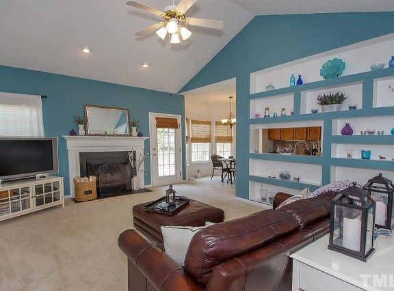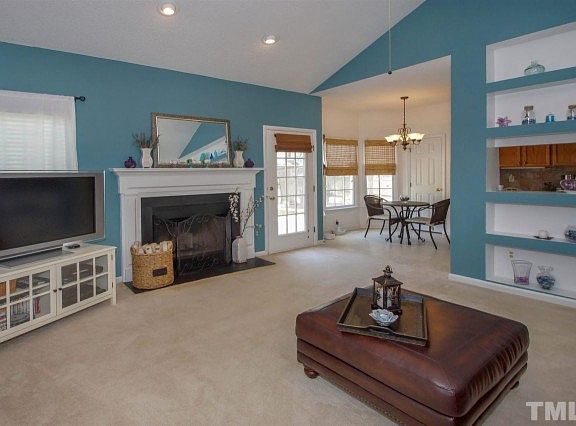 Shows like a dream! Freshly painted inside and out! You'll LOVE the open floor plan with cathedral in family room/ fireplace/ Built in Bookshelves/ Kitchen w/lots of cabinets and breakfast bar/ tile backsplash/ Bay window/ Desk area/ Wine rack/ Hardwood floors in dining, entrance and hallway/ Trey ceiling in master/ Large master bath with garden tub and sep shower/ Backyard is fenced for the kids and pets! Call Doreen with any questions! 919 868 2999