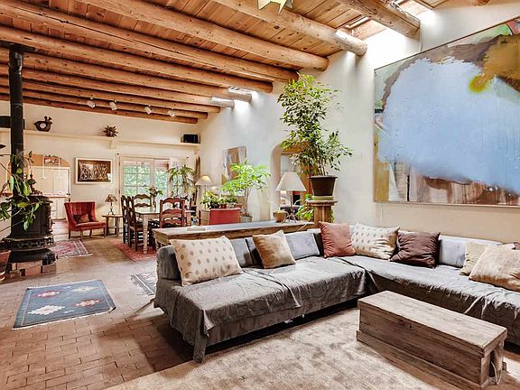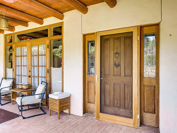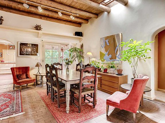 Eastside sanctuary in a gorgeous half acre setting. Timeless traditional craftsmanship in this three-bedroom, two-bath main house featuring white washed vigas, brick floors, hard wood floors under the carpets, two foot thick window setting with lentl and banco seating, an arched antique window, built in shelving with corbels, and kitchen fireplace add to the interiors appeal. Living, dining room is expansive with french doors leading to the south facing walled courtyard. Great room separation between master suite and the additional bedrooms. The property includes the attached guesthouse on the lower level that can also be accessed in the future from inside the main house. Both have a successful rental history, currently set apart for privacy. A rare offering, on half acre, minutes from downtown Santa Fe with easy access to the Dorothy Stewart trailhead off Camino Militar and the Nature reserve trail an acre down the path with a year round river running through the neighboring tree line. An easy stroll to the Tea house and the Canyon road galleries. The separate, attached guest house on lower level has one bedroom, 1 bath, kitchen, and a garage bay that could be added square footage or future studio. Property also comes with a secondary two car garage that is currently leased. Located in the Historic Eastside; property is "noncontributing" status.
