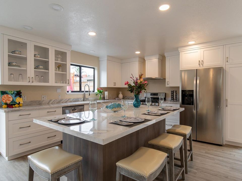 WOW, WOW, WOW, Honey STOP the car! This Beautifully updated home was rebuilt in 1992 with permits to its current configuration, now features: Gorgeous quartz countertops, custom high end cabinets w/tons of amenities & Breakfast Island w/cabinets. Carmel stone fireplace in living room, stereo cabinet w/additional lighted glass shelving, nice Wet Bar! Downstairs has 2 bedrooms and one full bath & enclosed full size washer/dryer. Lighted stairs up to second level features bonus built-in custom soft-closing closet on landing, large, vaulted ceiling bedroom with walk-in closet, full jack-n-jill bathroom & 4th bedroom. The backyard has a full RV pad w/separate gate, several entertaining areas, fire pit, making this yard an outdoor entertainment heaven! One car garage with auto opener, tandem parking for 3 cars in front on beautiful stamped concrete driveway, Additional parking driveway with gate for boat access. This is a MUST SEE DREAM HOME! Make this home yours to celebrate the New Year!
