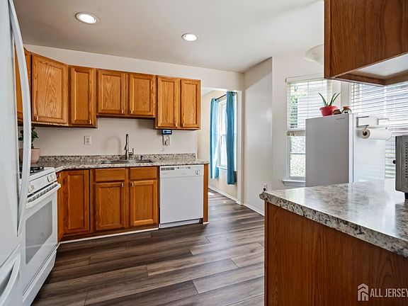 Welcome to effortless living in the heart of East Brunswick's sought-after Kingswood Station community! This beautifully updated and meticulously maintained east-facing ground-level unit in desirable Country Woods offers a perfect blend of comfort, style, and convenience. Step into a spacious open-concept living room adorned with recessed lighting and sliding doors that lead to your private patio-ideal for relaxing or entertaining. The formal dining area flows seamlessly into a bright and inviting eat-in kitchen, complete with a charming bay window that fills the space with natural light. The serene primary suite features a generous walk-in closet and a fully updated en-suite bath. A well-sized second bedroom and a second full bath offer flexibility for guests, a home office, or additional living space. The home also includes a large laundry room with a newer washer and dryer, as well as ample closet space, including a deep hallway storage closet and linen closet. Enjoy all the amenities the community has to offer-outdoor pool, tennis courts, and a playground-all just minutes from Crystal Springs, local parks, and major commuter routes including Route 18 and the NJ Turnpike. With assigned parking, guest parking, and access to East Brunswick's award-winning schools, this home truly has it all. Move right in and start enjoying the lifestyle you deserve!