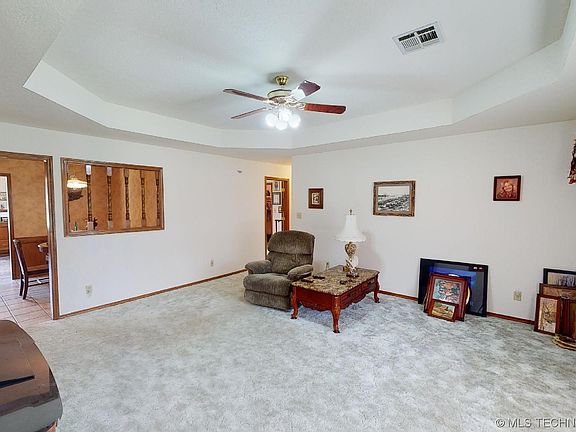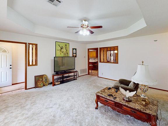 Very well maintained single story, full brick home with 3 bedrooms, 2 full and 1 half baths. Granite kitchen with breakfast nook. Office with exterior entrance. Formal living room. All bedrooms have walk-in closets. Hall bath with roll-in shower with grab bars. Granite in kitchen installed in 2015. Roll-in handicap shower installed in hall bath in 2021. Seamless guttering installed in 2019 and Leaf Filter gutter protection with lifetime transferable warranty in June, 2020. New overhead garage door installed in March, 2022 with 5-year parts and labor warranty. Large corner lot with additional cement parking. Side-entry 2-car garage with overhead opener. Seller is Oklahoma real estate broker.