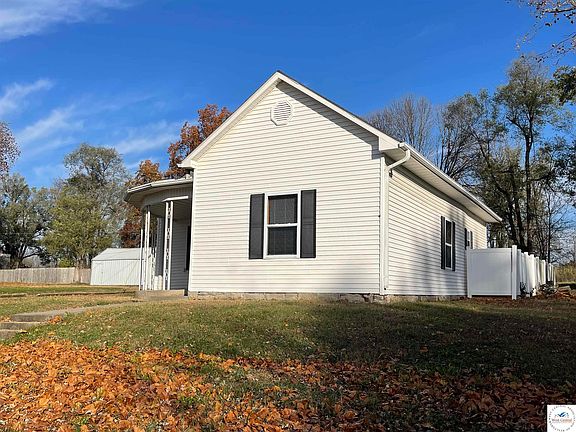 Charming property with a lot of great features! Corner lot with a rounded front porch and covered porch over the back door as well. Brick sidewalk for added character. Shed for additional storage plus there is off-street parking. Vinyl privacy fence on the east side. Inside this remodeled 2 bedrooms and spacious bathroom/ laundry with nice linen closet. Large living room with wide plank vinyl flooring. New kitchen with built in microwave, electric or gas hook up for the stove and eat in area. New carpet in the bedrooms and fresh paint throughout. This property combines modern updates with charming outdoor spaces, making it a cozy yet functional home.