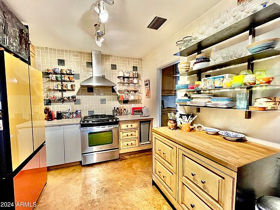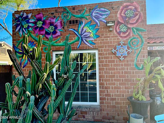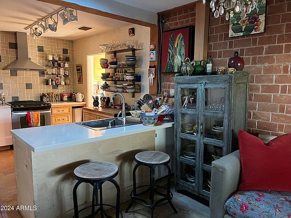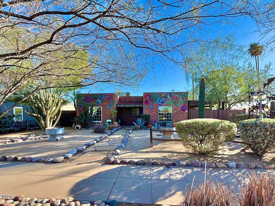 Historic Location: CHECK, Charm: CHECK, Artistic: CHECK, Modern updates: CHECK. This 1940's Red Brick bungalo checks all the boxes! From polished concrete floors to beautiful smooth-rounded cove ceilings in the Coronado Historic District of downtown, near the huge 10 acre Coronado grassy park. This warm & inviting home is a MUST SEE. QUARTZ countertops, GAS cooking, CUSTOM CABINETS & fridge, BOSCH stainless dishwasher, Desire a 2nd bathroom? Endless possibilities with room in the laundry to add. . A west side covered patio & 2 on the south side. Double carport secured behind a sliding gate. Separate ART STUDIO/storage shed with lots of natural light. Full desert front yard surrounded with a decorative split rail fence. All metal art conveys! Comes with a Home Warranty through 8/23/2027!
