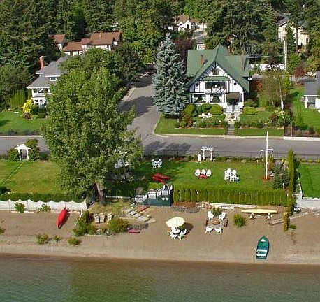 Lake Coeur d'Alene, Lakeshore Drive Area, close to Coeur d'Alene Resort Golf Course. 105' of prime sandy beach, classic turn of the century Victorian home with 9940 sq. ft. Appropriately remodeled, 4 Bedrooms, 6 baths, 3 family rooms, secluded finished porch area. Entertainment room downstairs is set up for great fun. Park like beach area with sandy beach. Kitchen is updated as well as dining area and main living area. Each floor has family rooms for entertainment. 3 car garage