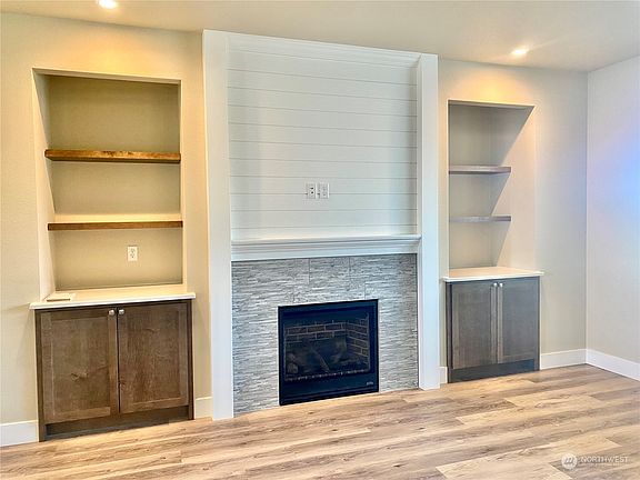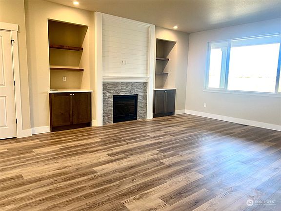 Beautifully appointed craftsman one & half story, 3 bedroom, 2 bath home, front porch entry, back porch & patio. Enjoy easy maintenance luxury vinyl floors throughout, open kitchen, plenty of storage, beautiful cabinetry, solid surface counter tops and stainless appliances. Open living room, gas fireplace, custom built-ins plus dining area. The primary bedroom enjoys 4 piece bath, tile floors, walk-in tile shower & walk-in closet. Upstairs bonus room creates a perfect flex space large enough for multiple uses. Corner lot, front yard landscaped, includes sod & sprinklers. Backyard is fully fenced, hydro-seeded with sprinkler system.