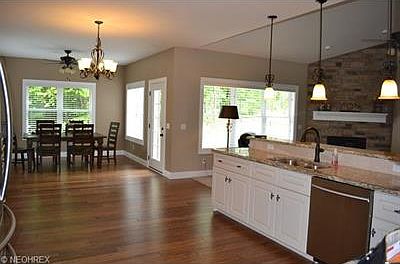High ceilings throughout this beautifully designed completely comfortable yet warm home with great flow and so much more. Open foyer with oversized woodwork and Bamboo wood flooring. Significant dining room stands up to any family. Oil rubbed bronze light fixtures and artfully crafted wood square pillars. Hand crafted cabinetry in the Kitchen and baths. Under-mount glide and soft close doors along with integrated beauty. Warm stone fireplace with custom mantle in the great room with easy flow to kitchen, dinette and sunroom. Comfortable owners suite with walk-in closet and generous storage. Solid surface granite countertops and custom wood cabinets in master bath with oversized tub and shower, and custom tile, mirrors and fixtures. Two additional spacious bedrooms. All glass sunroom over looking wooded, private backyard walks out to a concrete patio. Foundation is 12" thick block. Walls are 2'x6' construction with R19 insulation in the walls and R45 in ceiling and energy efficient.