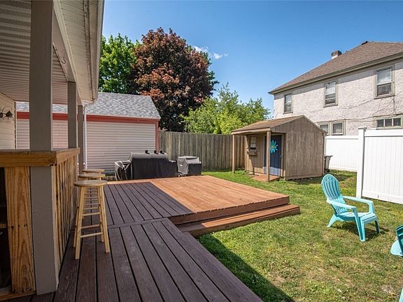 If you've been searching for a GREAT HOUSE on a quiet street w plenty of bedrooms and a fully fenced, manageable yard... you are in luck!! With TWO bedrooms on the main level & THREE upstairs, this floor plan will appeal to a wide array of buyers. There is SO MUCH SPACE in every nook & cranny! Even the upstairs landing has a purpose! BIG & COZY family room w brick, gas fireplace, SPACIOUS dining room, partially finished basement play/Rec room, NEWLY renovated main level bath! Oh, and thanks to the 2nd floor laundry room, your days of hauling a laundry basket up & down the stairs are history! NEW dryer! NEW dishwasher! High efficiency forced air gas furnace with Central A/C! Updated 200 amp panel! Brand NEW sewer & water lines! (Grass is being reseeded) The outdoor space is fantastic with a relaxing, shaded front porch that has been expanded & freshly stained. NEW vinyl fencing with lifetime warranty. A covered rear deck with bar, complete with mounted TV. Fire pit, big storage shed and an EXTRA driveway for spillover parking! Conveniently located near Griffiss, Franklyn's Field & all of the necessities. City of Rome taxes include UNMETERED water, sewer, trash & green waste pick up.