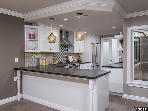 - KITCHEN FEATURES: 220 Volt Outlet, Dishwasher, Electric Range/Cooktop, Garbage Disposal, Microwave, Other, Counter - Solid Surface, Pantry, Refrigerator, Ice Maker Hookup, Updated Kitchen, Breakfast Bar, Self-Cleaning Oven