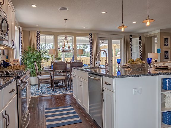 This home is a 3 bedroom 2 bath and features a split floorplan; the open-concept features a large area where the kitchen, living, and dining rooms live. The spacious master bedroom is located in the back of the home and has a large master bathroom, including both a shower and bathtub. The backyard comes complete with a large lanai and paved walkway. This is the Anna Maria model home that is available for purchase and the price includes all of the furniture.