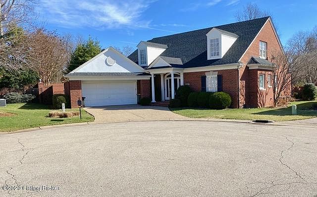 Gorgeous executive home in the most desirable location! 10 minutes from downtown, 2 minutes to I-264 & I-71, easy access to almost anywhere in Louisville. Located at the end of a quiet cul-de-sac with only 8 other homes. Fabulous open floor plan decorated by Bittners. Large great room with bookcases and cabinets, fluted columns showcase the formal entry foyer. The gourmet kitchen is adjacent to the formal dining room and opens to the private courtyard with brick enclosure and wrap around patio. The library is paneled with fireplace and hardwood floors. The floor master suite has a massive private bath and adjacent laundry room.