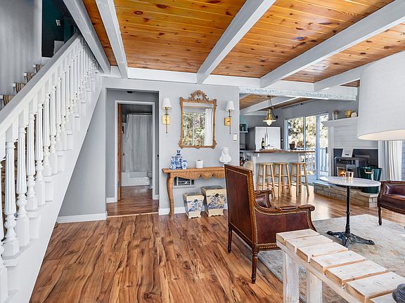 Opportunity awaits on this Modern Old World Cottage situated on almost an acre of private land in one of the most prestigious neighborhoods in Pinon Pines. This Cash flow opportunity is a turn key fully functioning AIRBNB & every bit of this home has been methodically planned out & decorated. Upon Entrance appreciate the craftsmanship of this cozy cottage as light illuminates from a multitude of windows highlighting custom hardwood floors, new neutral paint, Exposed wood plank ceilings and contemporary white beams. Cuddle up on Cold winter nights next to custom Pellet burning fireplace adjacent to this inviting quintessential kitchen tailored w/ custom center island with extra storage, Tiffany blue cabinets fitted w/ brushed bronze hardware to match custom light fixture, & lastly a deep farmhouse sink perfectly paired w/ butcher block countertops.As you work your way up enjoy these unique hand carved stair case balusters imported from Ukraine.This 3 bed 2 bath house will not disappoint