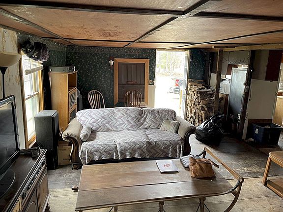 Affordable small home on 1 acre lot with a storage building and a quonset hut for a garage and more storage. Walk into the large dining room/living room combination and to your left you will find the kitchen with a woodstove that will actually heat the whole house. Full bath on main level and another small room off the kitchen that could be a bedroom or large pantry with it's own outside access door. Upstairs you will find another bedroom and an office/den area. There is also a 10 x 53 mobile home, with tenant, sitting on the back part of the same 1 acre lot. Great access to Wilton and Jay. Close to Farmington on the north and Livermore Falls on the south. Also, close to Sugarloaf, Saddleback and Mt. Blue State Park for all your outdoor activities. Wilson Lake is less than 2 miles from this home. Good commercial exposure on busy Route 4. Might not qualify for some secondary programs.