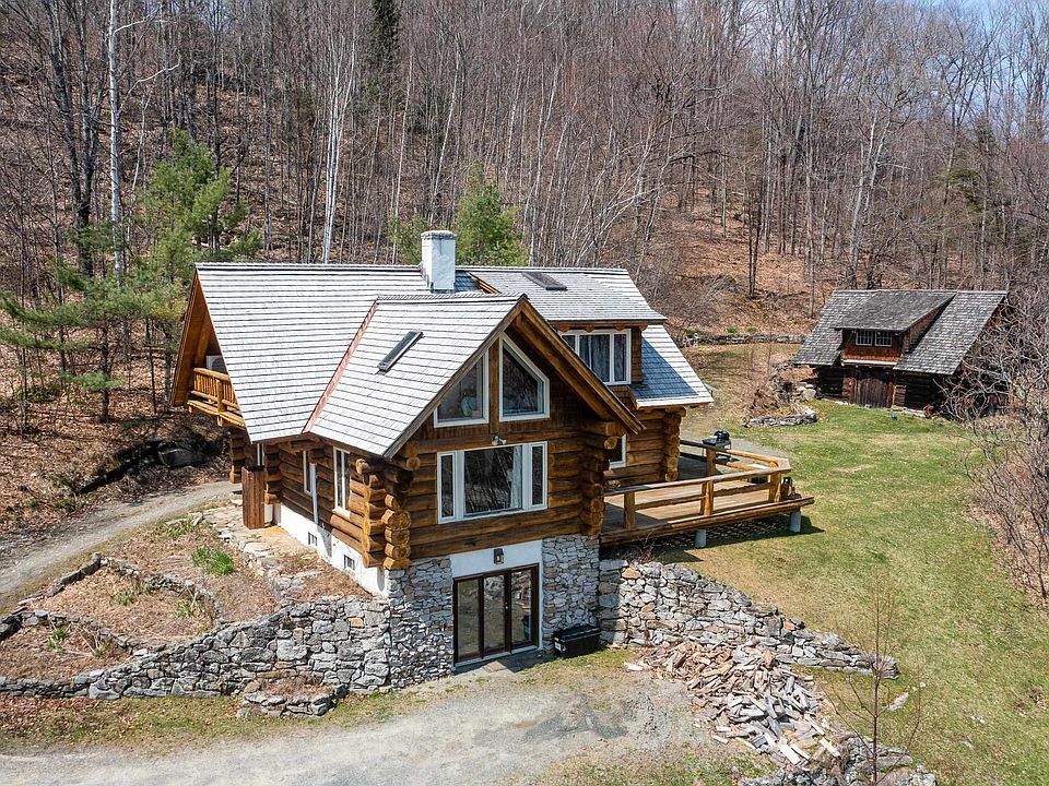 This country road will take you home to a beautiful 3 bedroom log home perched on a hill of 3+ acres with gorgeous mountain views. Coming up the winding driveway you admire the beautiful log home that was built with logs and stones from the property. Entering through french doors into the partially finished lower level you have tile floors and a space that could be utilized as a rec room or workout space. Woodstove here will help dry out your skiing or hiking clothes nicely! Climbing the hand-hewn spiral stairs, you enter into an open-concept kitchen/dining and living space all with mountain views out the large windows. This space features a fireplace as well and is where everyone with gather. You can access this level from the outside deck as well if you'd prefer. 3/4 bath and bedroom finish off this level. Up another set of hand-hewn spiral stairs to the 3rd level is where you'll find the primary bedroom with attached 3/4 bath featuring a large jetted soaking tub. Guest bedroom and bonus room that could be used for added sleeping space, home office or play room and a full bath round off this level. Rustic red cedar outbuilding was formerly a workshop space and is ready for your next project! This could be another great space to finish off in the future. Minutes back to Littleton's award-winning Main Street for shopping, dining and entertainment and also minutes to I-93 for easy travel. Golfing, hiking, biking, skiing, fishing, ATV's - all nearby! Come check out the view!