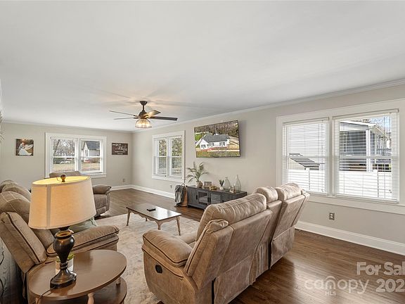 This charming 3-bedroom, 2.5-bath ranch sits on .92 acres, offering privacy, space, and no HOA! Minutes from downtown Kannapolis, you’ll have easy access to the Gem Theatre, Cannon Ballers Stadium, boutique shops, local breweries, Village Park and much more. Step inside to a bright and spacious living area filled with natural light. The spacious kitchen features a large island, ample cabinet space, and a breakfast area perfect for casual dining. A formal dining room provides additional space for hosting gatherings and special occasions. Beautiful refinished original hardwood floors flow throughout the home. The primary suite is generously sized and offers a private bath with tile floors. All bedrooms are spacious, providing comfort for the whole family. Outside, enjoy a fully fenced yard, perfect for pets and outdoor activities. The detached two-car garage offers additional storage and convenience. Don’t miss this opportunity to own a private retreat with no HOA and endless potential!