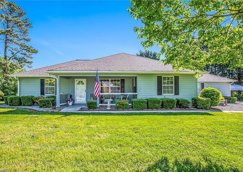 Wonderful one-story home that's just come on the market! This home boasts a brand-new roof and is situated on a beautifully landscaped, level acre. You'll love the tile porches, perfect for enjoying summer fun and entertaining. Updates since built include Roof 2025 Heat pump 2011, septic pumped 2023, nat gas for Water heater, grill and stove. House built with 2x6 and not 2x4 framing. Inside, the kitchen has been updated with brand-new granite countertops, a new backsplash, and a new sink. It overlooks a spacious dining area featuring a charming bay window and built-in seat. The entire home has been freshly painted and features beautiful tile throughout.This property offers fantastic outdoor potential – there's plenty of space to bring a boat or RV, or even add a pool. Plus, it comes with a convenient side-load third garage! This home is completely ready for you to enjoy. It's just minutes from shopping and downtown Kernersville, with both Beltlines easily accessible. No HOA dues!