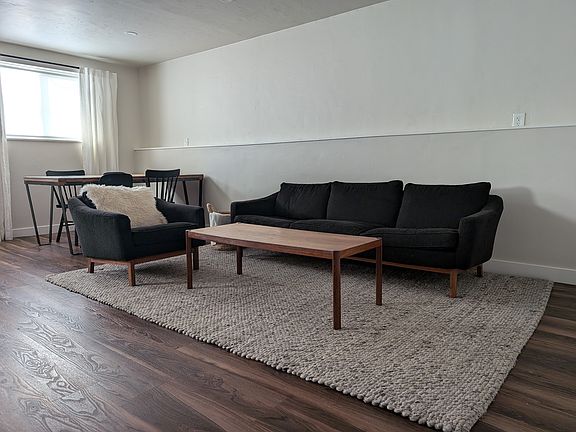 Fully furnished downstairs apartment with a separate entrance and above-ground windows, new finishes, and very comfortable. - Flexible lease term - partially furnished - Monthly rent of $1200 - All utilities and high-speed internet are included at a flat rate of $200 (Rent + utilities = $1400) - Flexible lease term - long or short according to your needs. - All utilities and internet included in rent - Apartment is fully furnished (in-unit washer/dryer, table, chairs, couch, tv, queen bed (if wanted), and fully equiped kitchen. Some pieces of furniture pictured may be swapped out for something newer. - Park access through backyard - Landlord does all yard work and maintenance