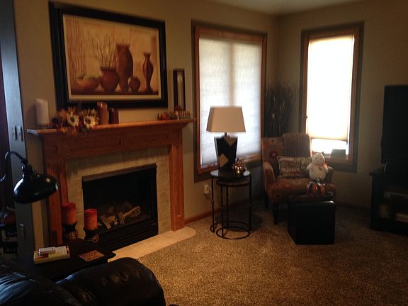 Maintenance free living-- Many Updates and Lots of Storage 3 Beds 2 Baths 55 plus, no pets, no smoking One level condo featuring a roomy open floor plan, vaulted ceiling and lots of storage. The kitchen has ample custom cabinets with pull out shelves, a large island, walk in pantry and new no fingerprint stainless steel Frigidaire Gallery appliances. The living room as a gas fireplace. There is new carpeting throughout and updated light fixtures. The dining room as sliding glass doors to a maintenance free deck. There are three bedrooms, all bedrooms have ceiling fans. The master suite has a large walk-in closet and a spacious bathroom with walk-in shower, custom made vanity, wood framed three door mirror/medicine cabinet and linen closet. A second bathroom has a full sized bathtub/shower, wood framed mirror and linen closet. The laundry, which is just off the kitchen, is complete with cabinets, sink, work counter, and clothing closet. The oversized double garage is finished and has hot and cold running water, floor drain and a spacious storage room with shelves. This is a beautiful well-kept condo which is move in ready. Please call 701-226-3190 if you desire further information or would like a showing. Year Built: 2006 Taxes: $2400.06 Heat/Cool: Central Air, Natural Gas Specials: $378.78/yr. Square Footage: 1795 Specials Balance: $1452.17 Flooring: Laminate/Carpet/Vinyl Average MDU: $104.12/mo.