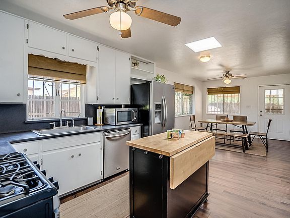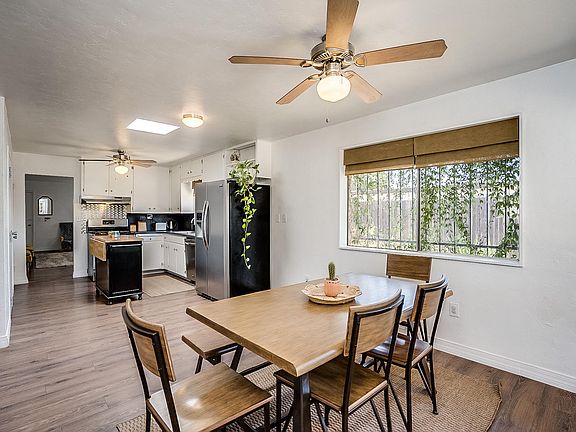 Super charming mid century home with updates in all the right areas while still maintaining that mid-century charm! This 3 bedroom 2 bath home sits in a split bedroom floor plan with 1316 sq ft and sits on a spacious .19 acre lot. Interior boasts new wood laminate flooring throughout living areas and carpet in bedrooms. Skylights throughout provide gorgeous natural lighting. Spacious kitchen has large walk-in pantry, plenty of counter space with stainless steel appliances! Master bedroom has roomy closet, private bathroom plus separate door to private patio. Large workshop in backyard is plumbed and has electricity going to it. Perfect for whatever your life has in store! Great central location, you will not be disappointed!