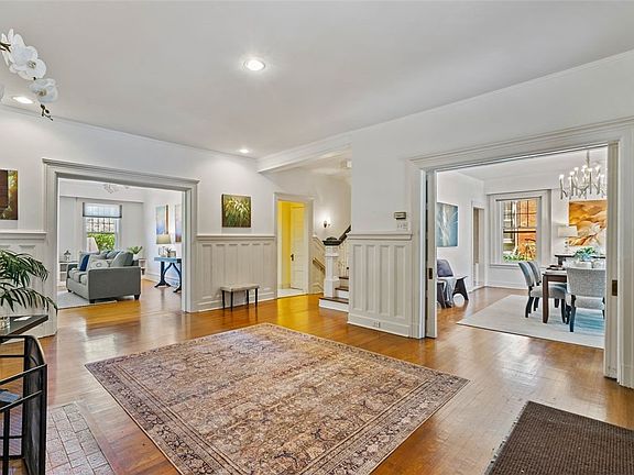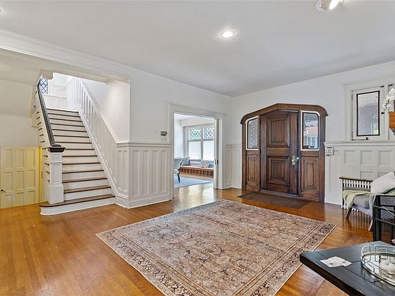 This grand and charming Tudor is even more spacious than it looks. Steps from the park it's the home of renowned artist Rochelle Blumenfeld. A grand foyer leads to a bright 19' living room and a banquet sized dining room. The kitchen with its center island, has storage galore. A butler's pantry, a wet bar, a powder room and a laundry are some of the other features of the main floor. Four bedrooms on the second floor are all large with excellent closet space. The hall bathroom has a double vanity and a soaking tub. Off the owner's bedroom find an updated bath. A wide stairway to the third floor brings you to a huge family room, formerly the artists painting studio, two more bedrooms, and another full bath! Let your imagination plan the uses for this awesome space. On the lower level you'll find a wonderful game room with fireplace and french doors to an outside arbor covered stone patio. Perennial gardens grace three sides of this home. Three blocks to the Bryant St business district.