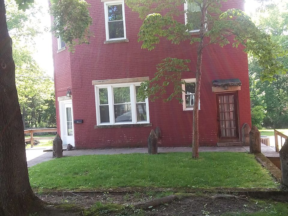 Fully modernized, bright and sunny 19th century three bedroom/two bathroom brick carriage house with open kitchen and dining room, living room, and central heat and air, situated in a lovely grass plot with mature shade trees .
