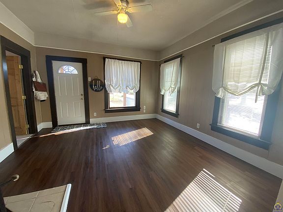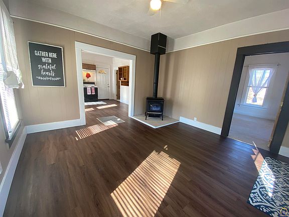 2 bedroom, 1 bath Oakland bungalow with 2 parcels for a total of 1.75 +/- acres/22 city lots. Enjoy your very own hobby farm from your covered front porch and enclosed back porch. Open living/dining/kitchen area. Appliances & wood stove stay, vinyl siding/some vinyl windows. New steel exterior doors, newer gutters & front porch. Full unfinished concrete basement with inside entrance. At the end of the street overlooking your own farmland. Old barn on property. Near park and new Dollar General & Kwik Shop. Owner/agent