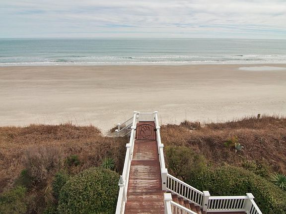 Amazing, oceanfront and creekfront home in the gated Peninsula at Inlet Point community. Nothing was spared in this signature Tommy Morris custom built house which exudes elegance and the finest quality. Walk up to the front porch with IPE decking and custom designed wrought iron Palmetto Trees and Sea Oats. The first level has a beautiful living room with built in book shelves, oak hardwoods, 20' ceilings, fireplace with brick and granite surround and breathtaking ocean views. The large gourmet kitchen features tile floor, granite countertops with semi-circular breakfast bar, custom cherry cabinets, flat cook top stove with auto back screen, large walk in pantry and oceanviews. The large, first floor master bedroom overlooks the creek. It has a large 8'x8' walk in closet, linen closet and 12'x11 master bathroom boasting of jetted whirlpool tub, stained glass windows, double sink and walk-in tile shower. The downstairs laundry room has a utility sink, business desk, computer and electronics area and additional refrigerator/freezer. The second floor master has a balcony with expansive ocean views and large bath with stained glass windows, double sinks, shelves, whirlpool tub and walk in closet. Owners also enjoy a second story den with oak floors, ceiling fan, bookshelves, entertainment center and surround sound. Other features in the house include a sitting area with game table on the upstairs overlooking the ocean, massive porches with creekviews on the front and ocean views on the back, elevator, economical Geo Thermal "enclosed system", water filtration system, central vacuum system, custom made draperies, downstairs showers, high impact windows, whole house surround sound and so much more. You have got to see this one!