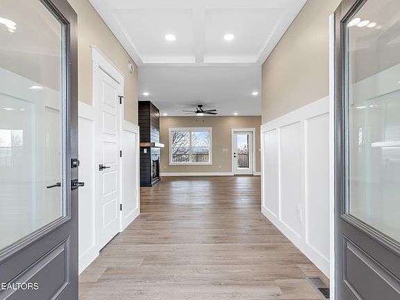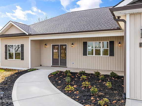 Quality, New Construction loaded with custom features and upgrades throughout. Situated on a gorgeous, corner lot with views of the Smoky Mountains, this 3 Bedroom, 2 Bath boasts single level living and fantastic outdoor living space. Your guests will love the farmhouse double glass front doors leading into the picturesque formal entry with coffered ceiling and wainscoting. The flooring throughout is a commercial grade, water-resistant and scratch-resistant limestone composite that has the benefits of LVP but has the rigidity and feel of real hardwood & a lifetime warranty. The fireplace mantel is handcrafted from wormy maple lumber which was locally grown, locally harvested and locally milled. The delicious kitchen features vanilla white cabinetry with soft-close doors and drawers, custom-made wormy maple floating shelves, granite countertops, a stainless steel farmhouse sink & stainless steel appliances. A split bedroom floor plan offers 2 large guest rooms and a private and secluded owner's suite. The owner's suite boasts an ensuite with a custom tiled shower, double vanity sinks and a huge, walk-in closet with custom shelving. The owner's suite also features its own private entrance to the massive, covered back patio with composite decking and powder-coated aluminum railings. The oversized 2-car garage is pre-wired for a charger for an electric vehicle & offers floored attic storage. A gas, tankless water heater with recirculating pump offers instant hot water to all the home's faucets. The spacious laundry room features a handcrafted hall tree with bench storage. If you are looking for a quality built home with attention to all the details, look no further. Owner Agent