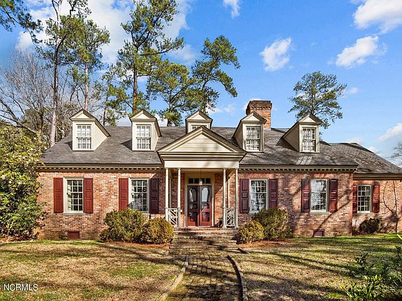 One of kind home in the heart of Kinston! This home offers 3 bedrooms, each with its own full bathroom. This home is situated on a desirable 3/4-acre corner lot with lots of privacy and includes a Geo-Thermal heating and cooling system. Impressive living area including built-in bookcases, wet bar, gas logs and floor-to-ceiling windows with access to the brick patio that's perfect for entertaining guests. Spacious, eat-in kitchen with built-in appliances, granite countertops, custom cabinets and a large bay window overlooking the Elizabethan-influenced Gardens. Formal living room with wood burning fireplace just off spacious formal dining room. Laundry/mud room with lots of storage and a half bath conveniently located off kitchen. Home includes stairway that leads to large, floored attic. Magnificent landscaping including azaleas, crepe myrtles, holly ferns, Helleborums, and multiple flower beds and shrubs that are watered by the irrigation system. The home has a slate roof that was installed in 2017. The property has custom brick fencing, driveway and parking area.