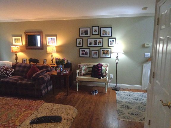 Outstanding Sterling Woods townhome. The best you can find: end unit, crown molding, raised paneling, updated eat in kitchen with granite and stainless steel appliances. Main level hardwood floors & finished walkout lower level. Designer colors, unit borders woods. Private deck and walkout patio. No pets or smokers please. Owner would prefer a 2 year lease. Available July 1st. Great on site amenities including clubhouse, pool, playground and walking trails. Minutes to services, interstate and employment centers.Mint condition